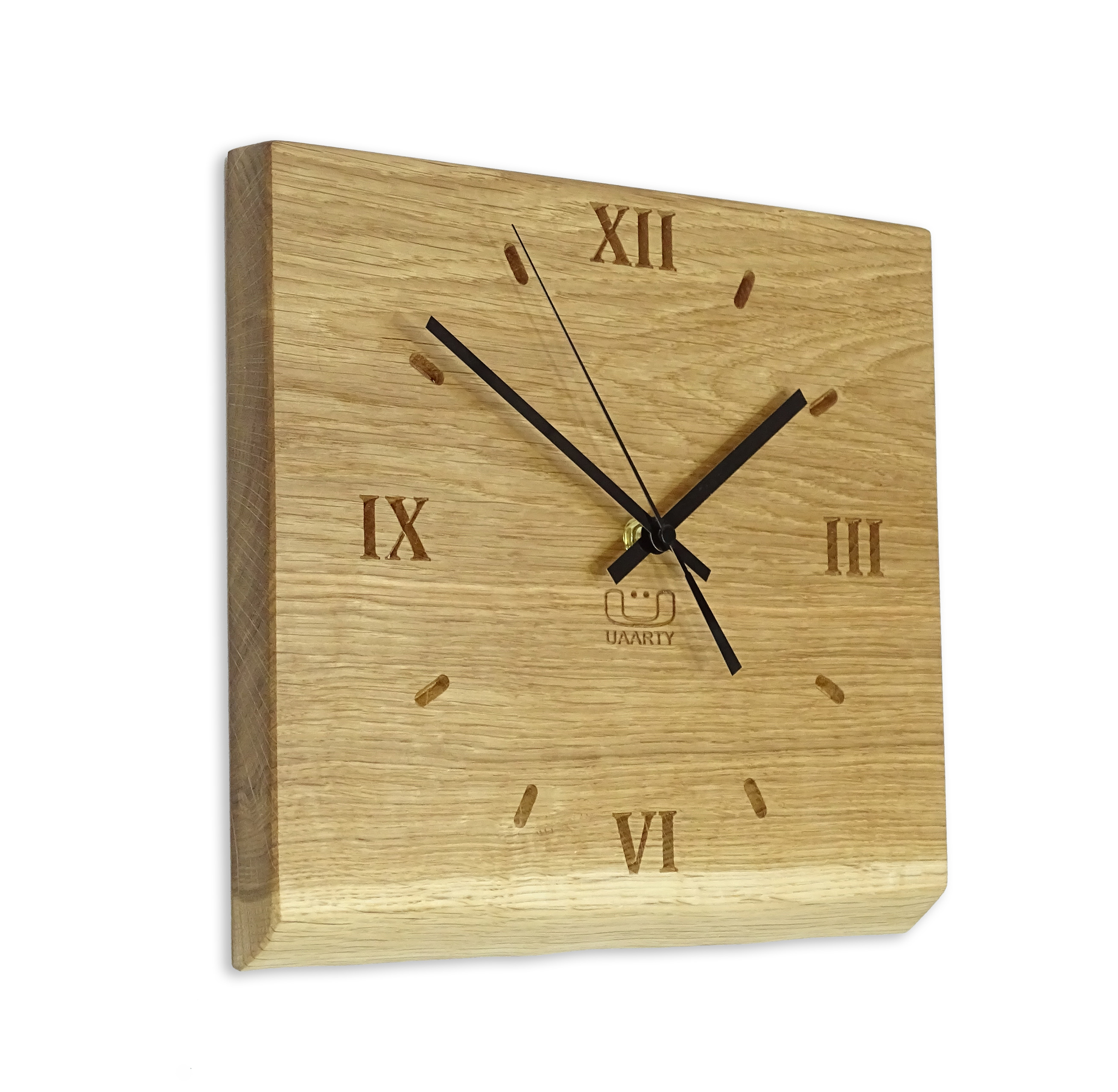 - Premium Material: This wall clock is made of oak wood with a live edge to get a smooth and natural finish. With a rectangle shaped design, it has engraved face detail and the wood is treated with RUBIO® products to ensure it receives the best available protection on the market.