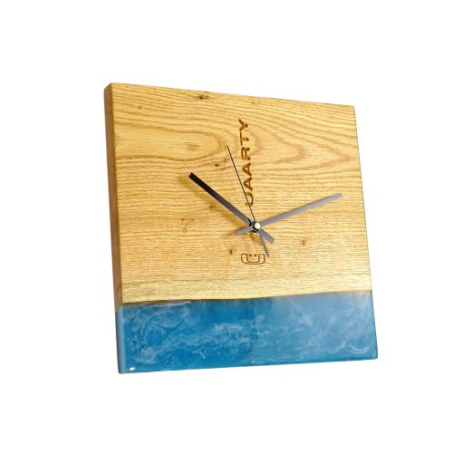 Signature Design Square Wall Clock Oak & Epoxy (AutoSet): 22 - Magic Blue